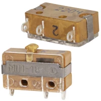Микропереключатель представляет собой малогабаритные устройства, задачей которых является коммутация цепей постоянного и переменного тока посредством механического воздействия в устройствах радиотехники и электроники. Преимуществом является возможность дистанционного управления приборами с мгновенным действием.