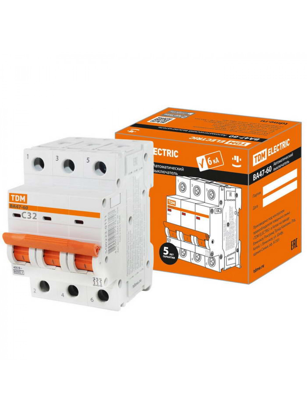 Автоматический выключатель ВА47-60 3Р 32А 6кА х-ка С